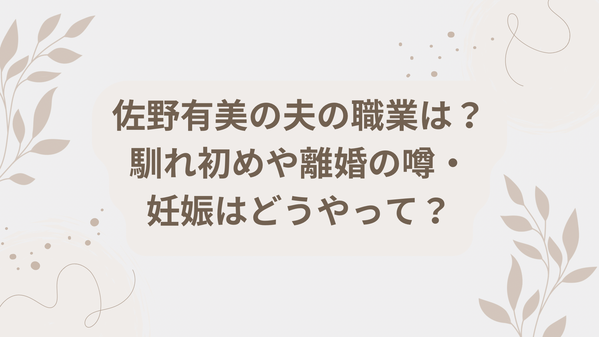 そこでこの記事では、佐野有美さんの夫の職業は何をしている人なのか、馴れ初めや離婚の噂の真相、妊娠はどうやってしたのかについて調査してみました。