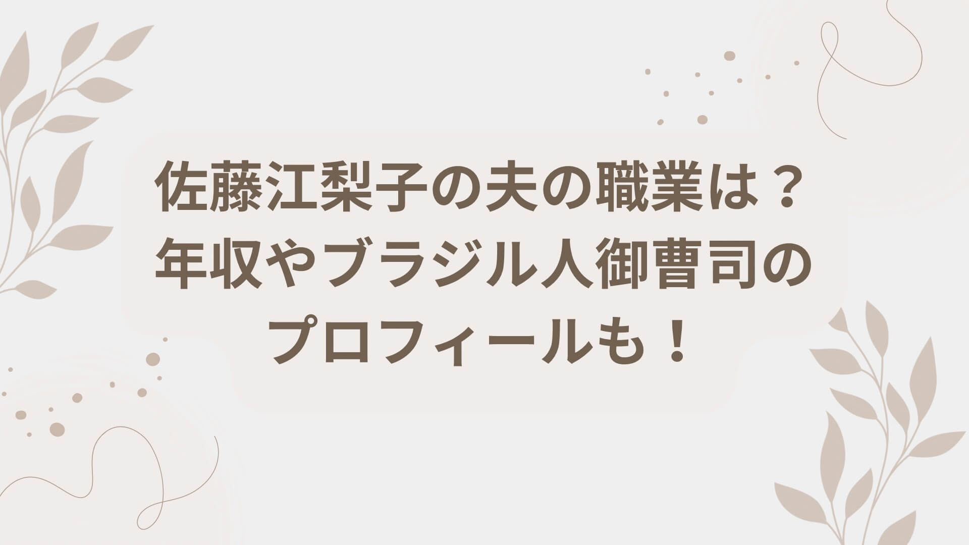 そこでこの記事では、佐藤江梨子さんの夫の職業は何をしている人なのか、年収はどのくらいなのか、ブラジル人御曹司のプロフィールについても調査してみました。
